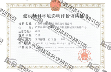 證書名稱:廣東省建設(shè)項目環(huán)境監(jiān)理資格行業(yè)評定證書