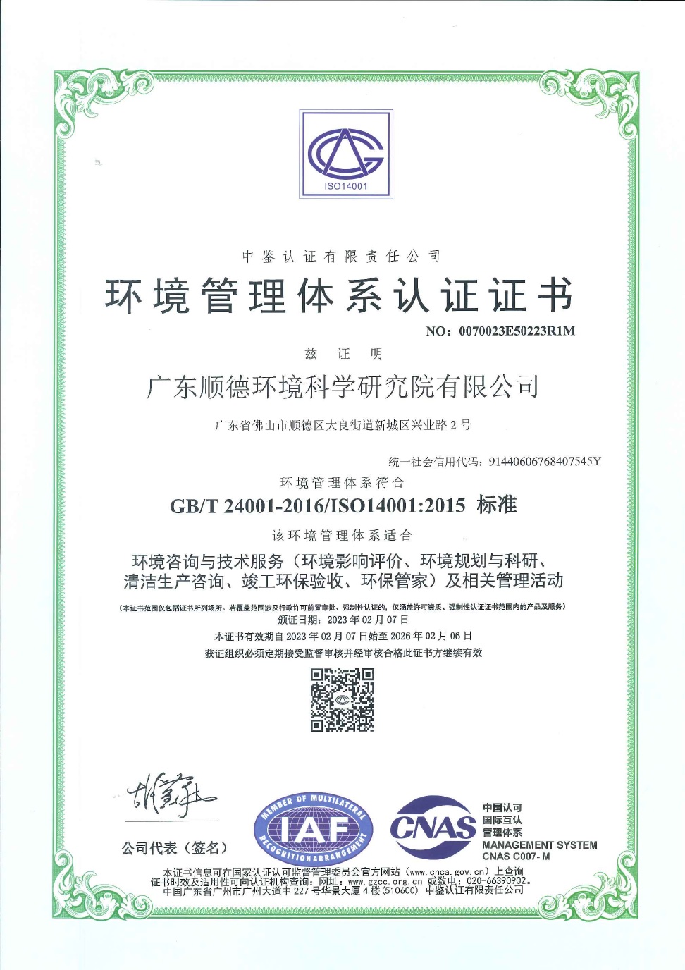 廣東順德環(huán)境科學(xué)研究院有限公司成立于1986 年,為全國首家由事業(yè)單位轉(zhuǎn)制的環(huán)境技術(shù)咨詢機構(gòu),為廣東省首批獲得原環(huán)評資質(zhì)的單位之一。經(jīng)過多年發(fā)展,我院業(yè)務(wù)范圍已涵蓋環(huán)境規(guī)劃與科研、環(huán)境影響評價、竣工環(huán)保驗收調(diào)查、環(huán)境檢測、環(huán)境事件應(yīng)急預(yù)案編制、環(huán)保管家服務(wù)、國家排污許可證申領(lǐng)與維護、土壤污染狀況調(diào)查、水質(zhì)高光譜遙感監(jiān)測、清潔生產(chǎn)審核咨詢、危險廢物鑒別、環(huán)境工程監(jiān)理、節(jié)能評估等等,是一家環(huán)境綜合咨詢服務(wù)企業(yè)。[更多]